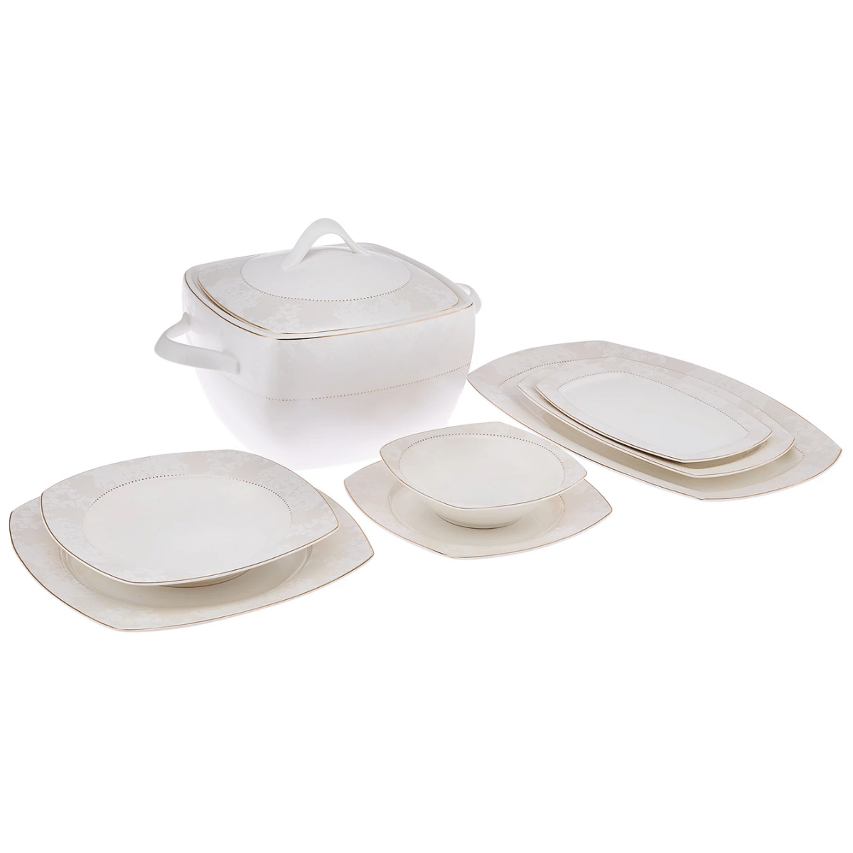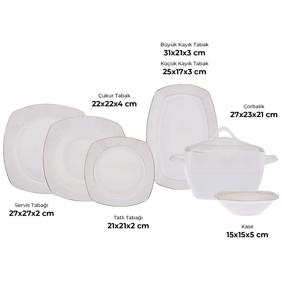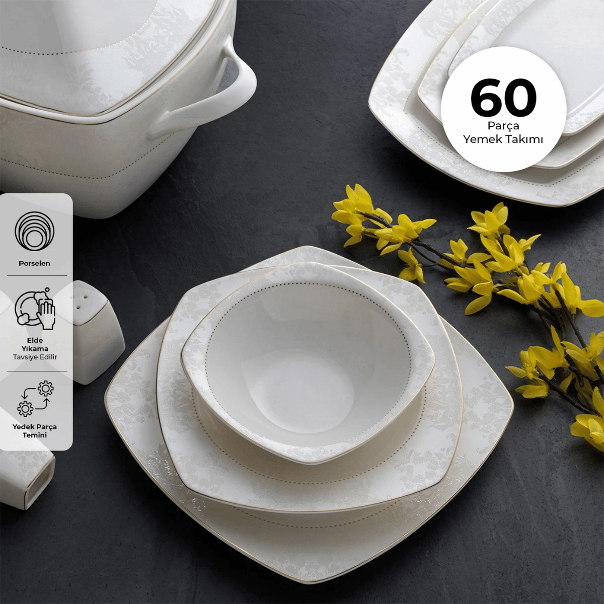 Emsan Bone Yeni Defne 60 Parça 12 Kişilik Yemek Takımı Yarım Kare