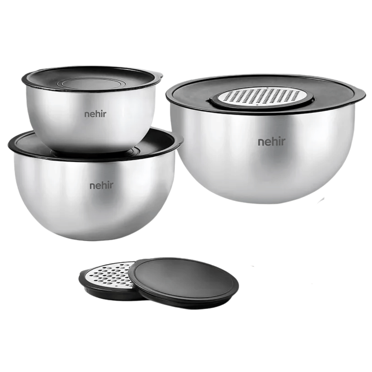 Nehir Silver Çelik 9 Parça Rendeli Karıştırma Kabı Takımı